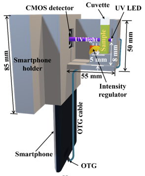 Smartphone colorimeters have been widely demonstrated in the visible spectrum, but extending these platforms into the ultraviolet domain has remained a bottleneck. Despite being medically relevant, smartphone-based near-UV colorimetric sensing has remained largely unexplored—until now.